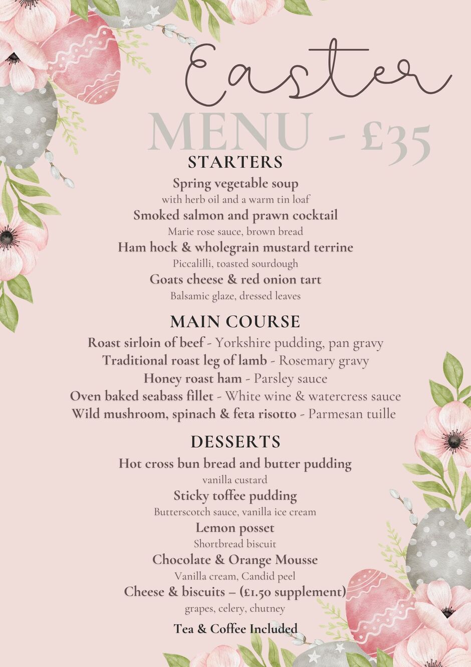 Celebrate Easter Sunday at Brocton Hall Golf Club with family, friends, and a delicious seasonal feast. Our Easter menu has been thoughtfully created to bring together traditional favourites and fresh spring flavours, perfect for a relaxed and enjoyable afternoon.